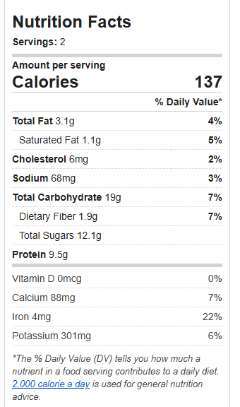 137 Calories – 19g Carbs